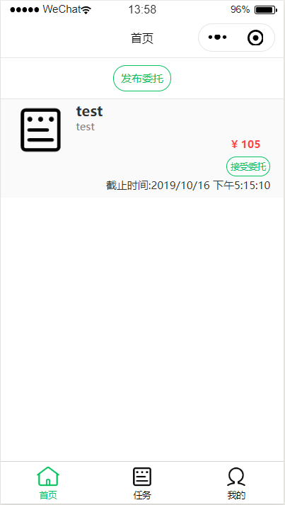 - 功能设想:首页展示所有的委托,同时有通道能够前往发布委托的页面