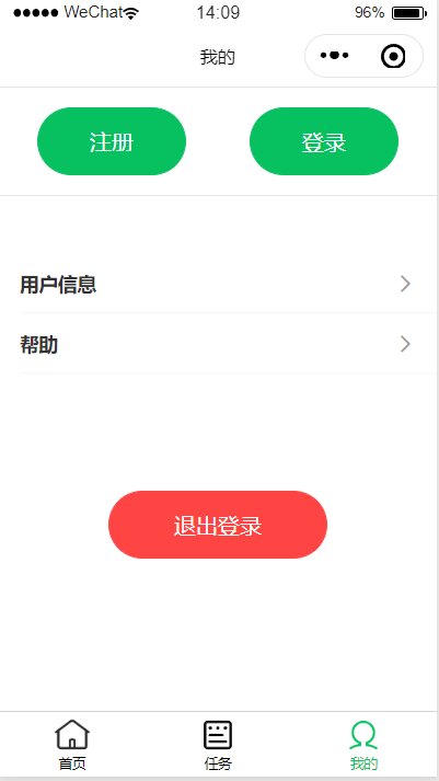 - 通过简单的按钮实现注册,登录等, 登录后通过类似于card的形式展示部分信息